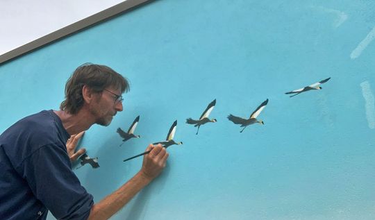 In 2020, the International Crane Foundation completed a massive expansion at their site - Improvements to ten crane exhibits including six, new panoramic background murals. Jay is excited and honored to play a part in this special project.